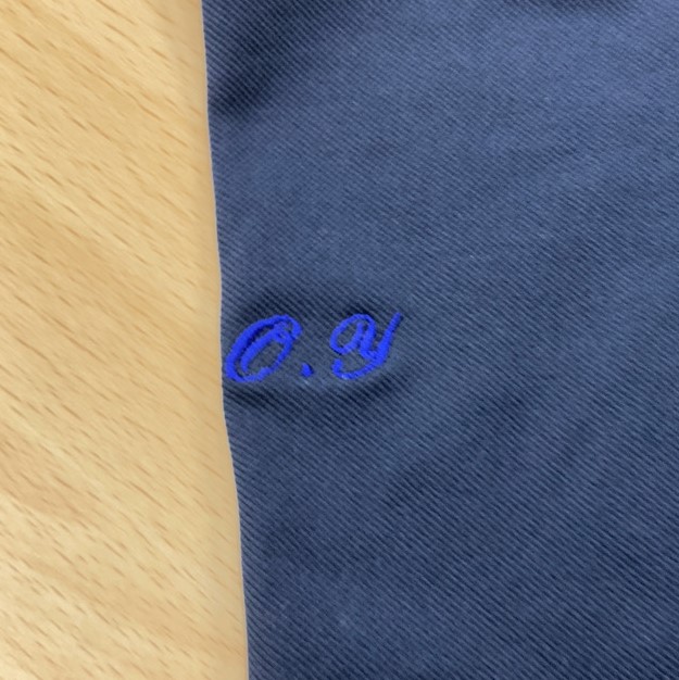 写真は「O.Y」の表記ですが、筆記体だとワンポイントのデザインにも見えますね。