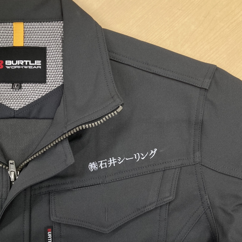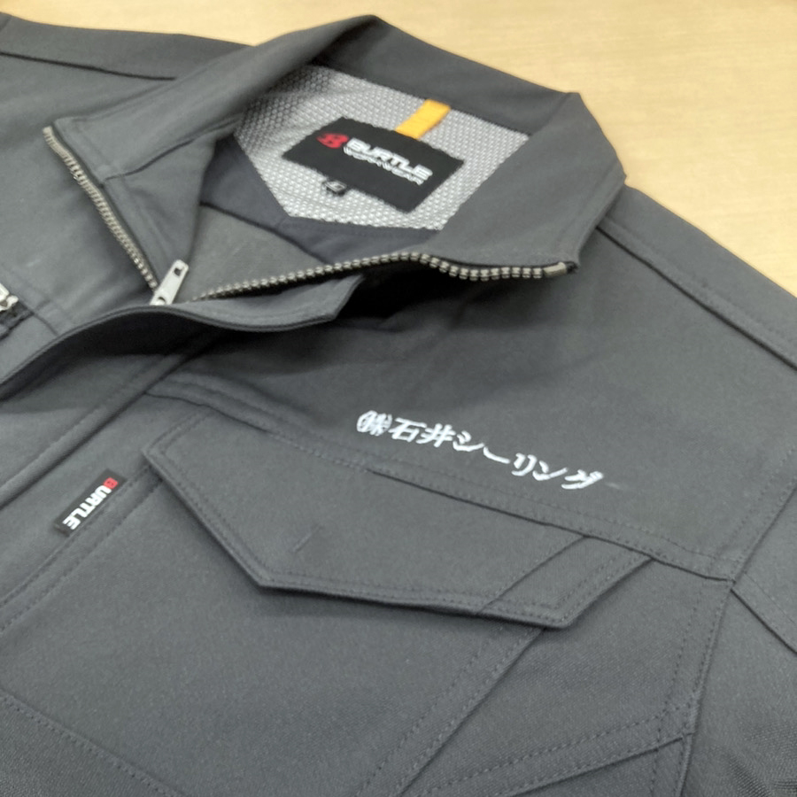 この度はバートルの長袖ブルゾンに銀色の刺繍加工をさせていただきました。