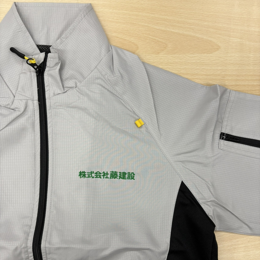 この度は自重堂のジャケットに緑色の刺繍加工をさせていただきました。