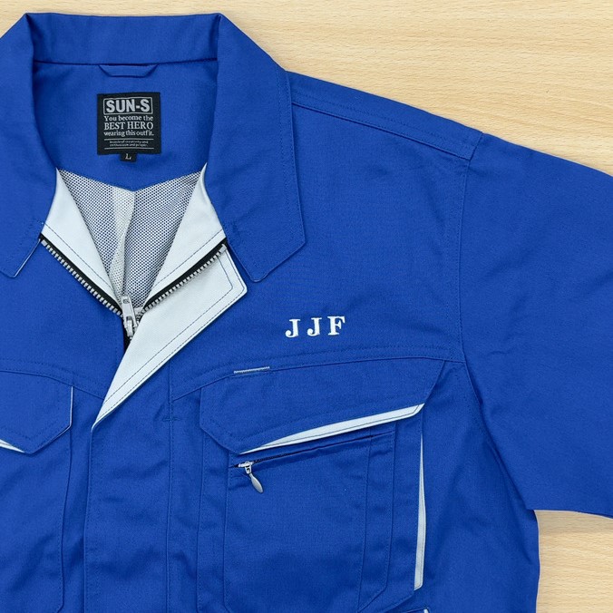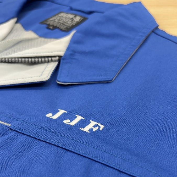 作業服自体にも白色の配色があるため、刺しゅうのカラーとも合っていますね。