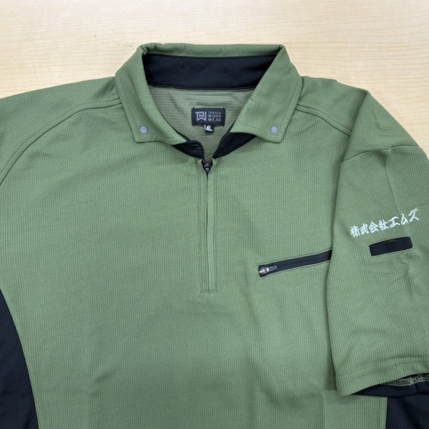 今回はタカヤ商事の半袖ポロシャツに銀色の刺しゅう加工をさせていただきました。